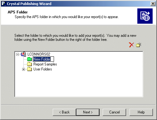 To add a new folder to the APS, select a parent folder and then click the New Folder button. The new folder appears and can be renamed.
